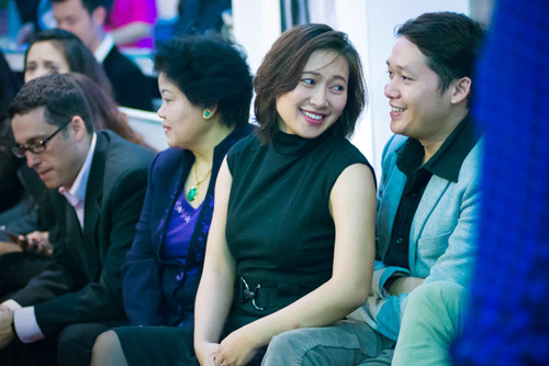 Đôi tình nhân xuất hiện trong buổi ra mắt showroom mới của một hãng thời trang tại Hà Nội. Khánh Linh luôn miệng cười nói vui vẻ với bạn trai ở hàng ghế khách mời.
