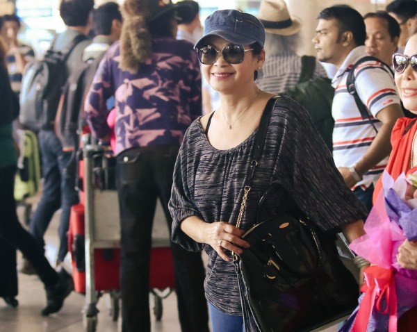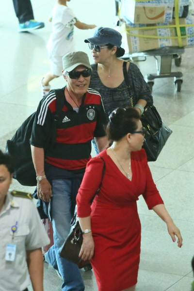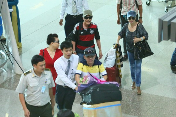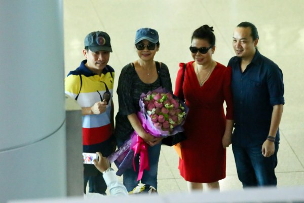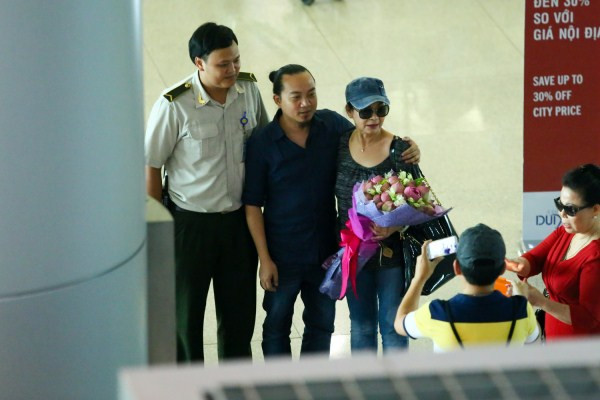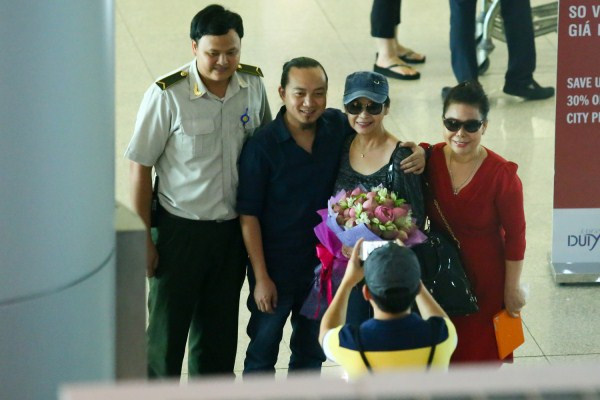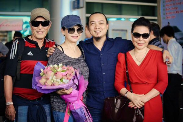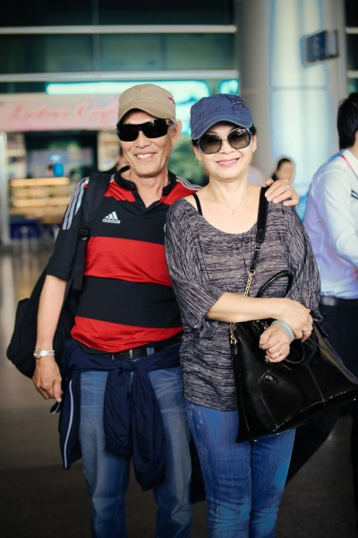 Khánh Ly rạng rỡ cùng chồng tại sân bay Tây Sơn Nhất