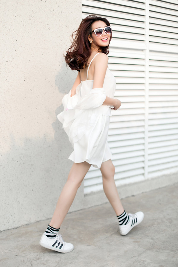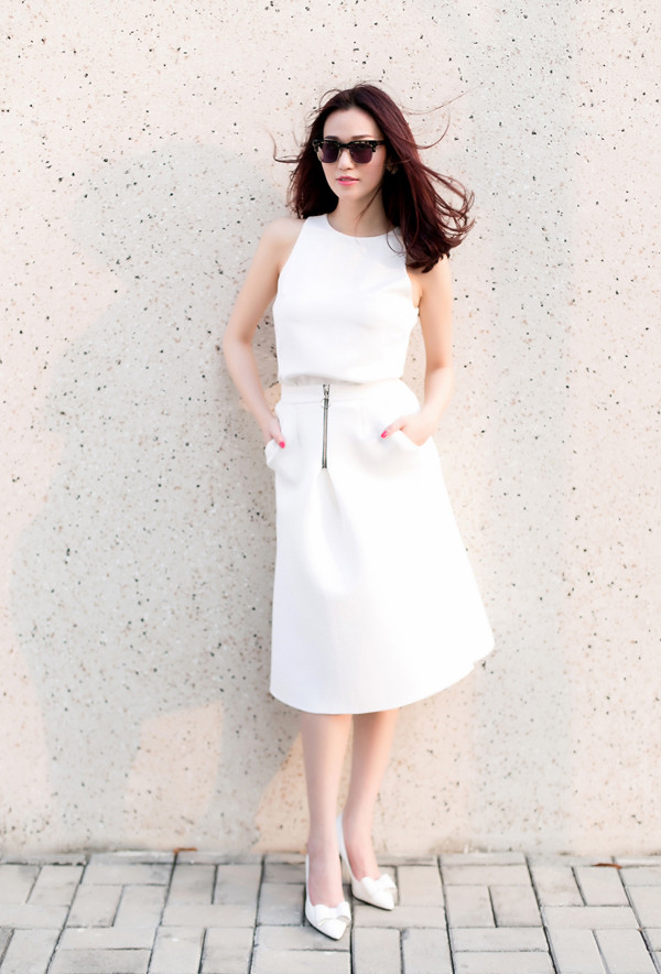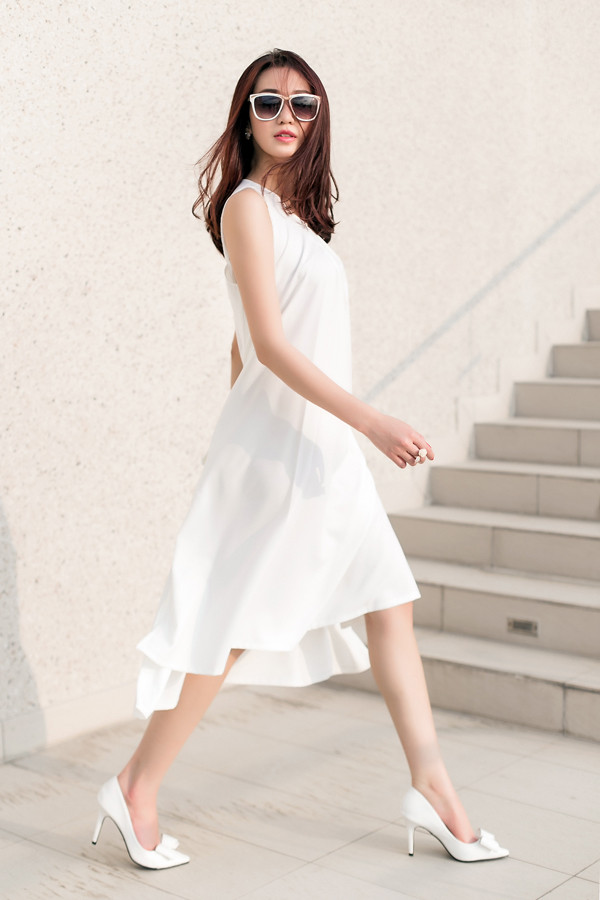 Diện đồ mang gam màu trắng mát dịu như Khánh My là gợi ý hoàn hảo cho các cô nàng trong mùa hè này.
