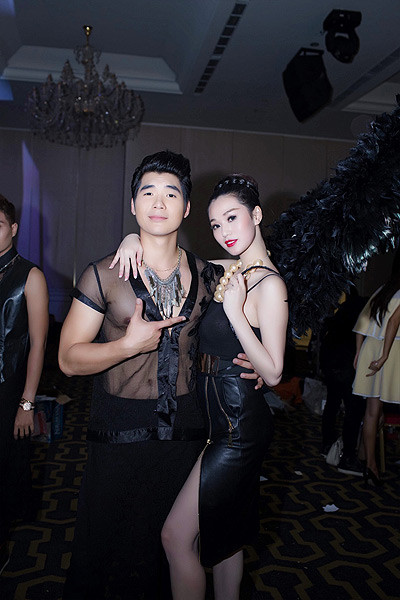 Người đẹp thân mật bên bạn diễn Trương Nam Thành.