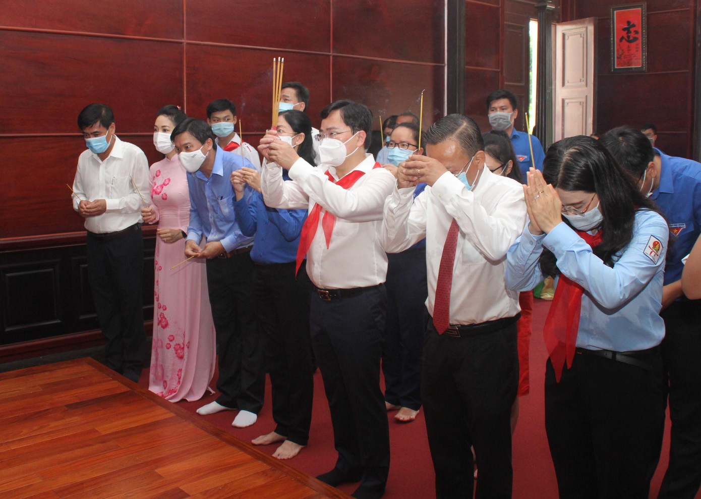 | Bí thư thứ nhất T.Ư Đoàn Nguyễn Anh Tuấn dâng hương tưởng niệm Chủ tịch Hồ Chí Minh tại Phòng thờ Bác |