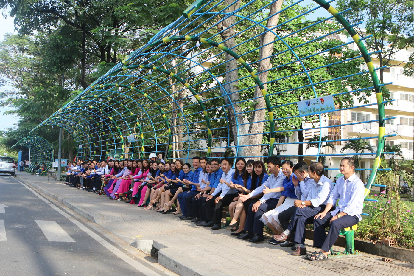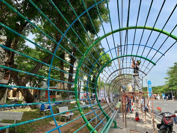 Công trình được khởi công ngày 20/11/2020 với tổng diện tích 470 m2 lấy ý tưởng những đường vòng cung mang biểu tượng cây tre Việt Nam. Công trình này là một phần của Dự án Không gian xanh do Chi đoàn Trung tâm Quản lý Ký túc xá phát động với mục đích hướng đến môi trường sống trong lành, an toàn, góp phần cùng Khu Đô thị ĐHQG TP. HCM xây dựng môi trường xanh.