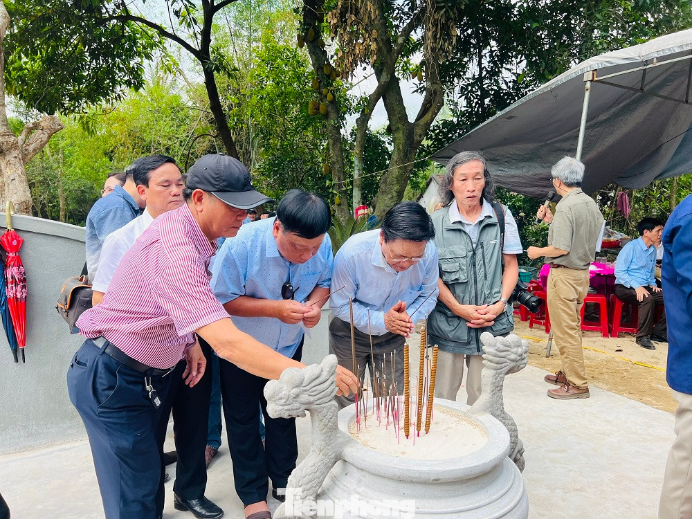 | Những học trò qua các thế hệ thắp nén nhang trước phần mộ của thầy Nguyễn Đình Thảng. |