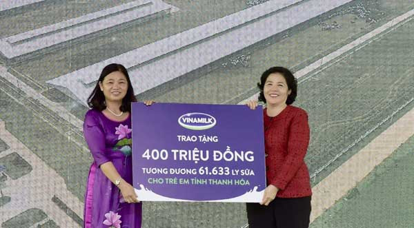 Cũng nhân dịp này, Quỹ sữa Vươn cao Việt Nam do Vinamilk đồng hành cùng Quỹ bảo trợ trẻ em Việt Nam thuộc Bộ Lao động Thương binh và Xã hội đã trao tặng 61,633 ly sữa, tương đương 400 triệu đồng cho trẻ em tỉnh Thanh Hóa. Đây cũng là điểm dừng chân đầu tiên trong hành trình trao sữa năm 2018 của Quỹ sữa Vươn cao Việt Nam, nhân kỉ niệm 10 thành lập Quỹ sữa Vươn cao Việt Nam (2008-2018) để góp phần cải thiện sức khỏe của các em, tạo điều kiện để các em phát triển tốt hơn về mặt thể chất và trí tuệ