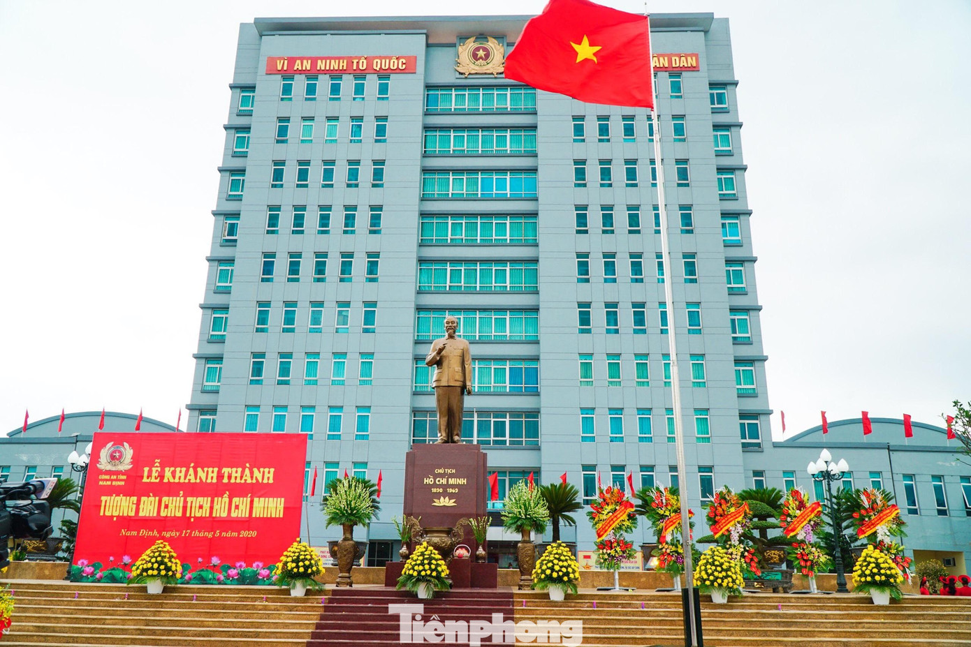Thông tin tại buổi lễ, đại diện Công an tỉnh Nam Định cho biết Công trình tượng đài Chủ tịch Hồ Chí Minh được khởi công xây dựng từ ngày 27/12/2019, trên diện tích rộng 370 m2, trong khuôn viên trụ sở Công an tỉnh. Trong đó, tượng bác cao 3,9 m, đặt trên bệ cao 3,6 m; đúc bằng đồng nguyên chất, trọng lượng hơn 5,5 tấn. Đây chính là mẫu tượng Chủ tịch Hồ Chí Minh của nhà điêu khắc Phạm Bá Đua trước đó đã được xây dựng tại Học viện Cảnh sát nhân dân.