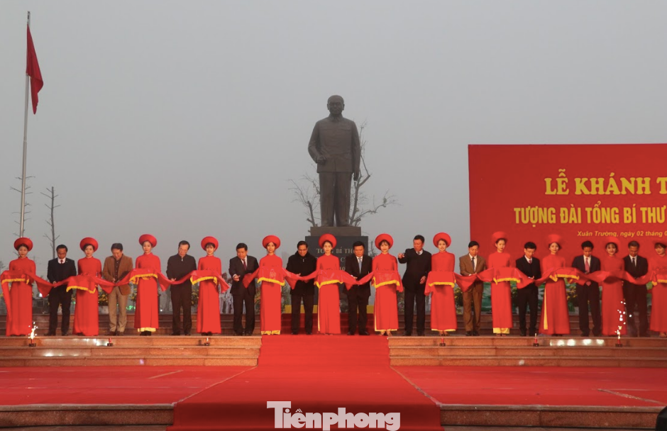 Tại buổi lễ, Trưởng Ban Tổ chức TƯ Phạm Minh Chính và các đại biểu đã cắt băng khánh thành tượng đài Tổng Bí thư Trường Chinh.