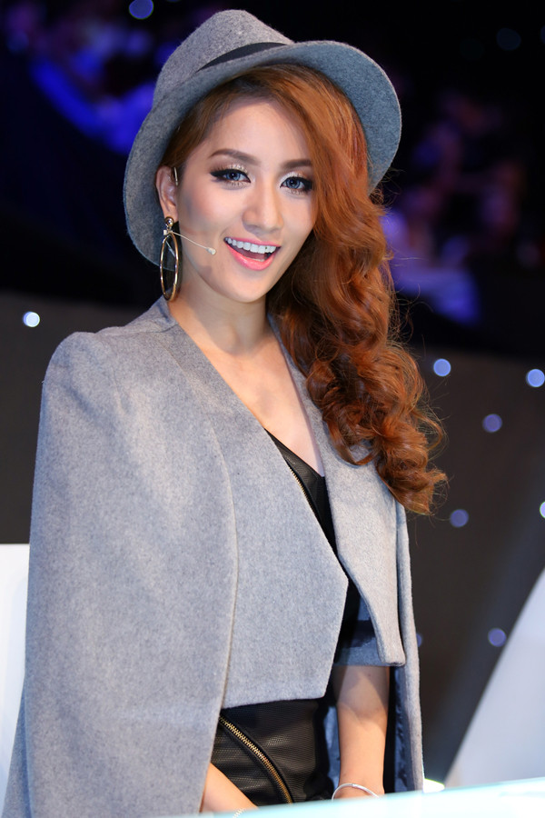 Tối 15/2, Khánh Thi xuất hiện đầy phong cách khi ngồi ghế nóng liveshow 5 Bước Nhảy Hoàn Vũ 2014.