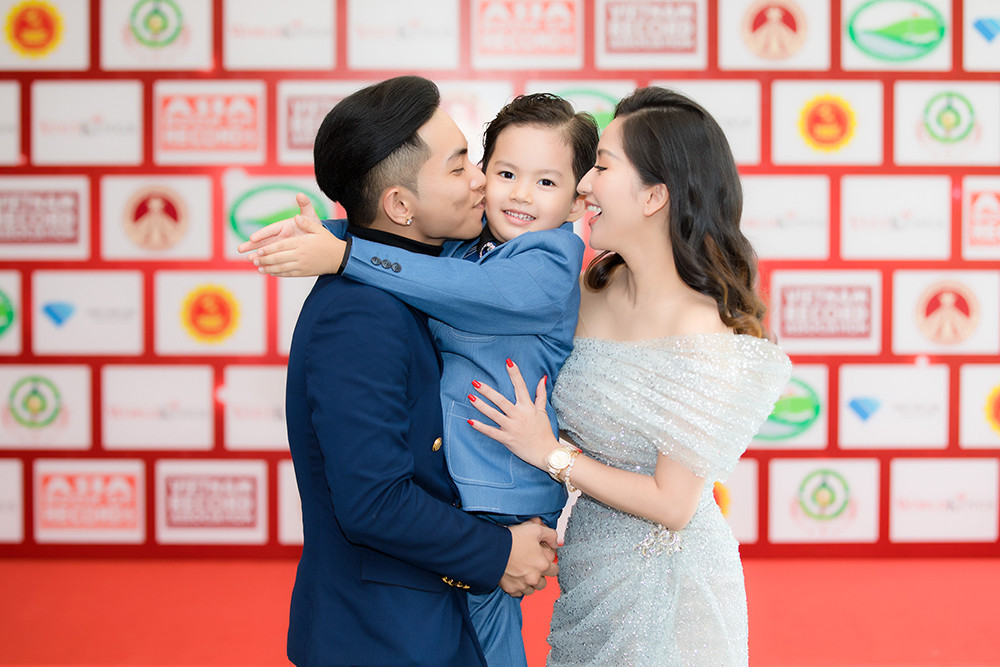 Trong ngày anh trai nhận bằng khen của tổ chức Kỷ lục Việt Nam, vợ chồng Khánh Thi – Phan Hiển đưa con trai đầu lòng Kubi đến chúc mừng. Mẹ ruột Khánh Thi cũng có mặt ủng hộ tinh thần cho các con.