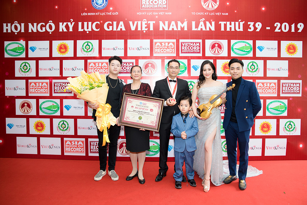 Mẹ của Khánh Thi cũng rất vui mừng trong ngày con trai được trao bằng xác lập kỷ lục ‘Người chế tác và biểu diễn đàn violin bằng sứ đầu tiên tại Việt Nam’.