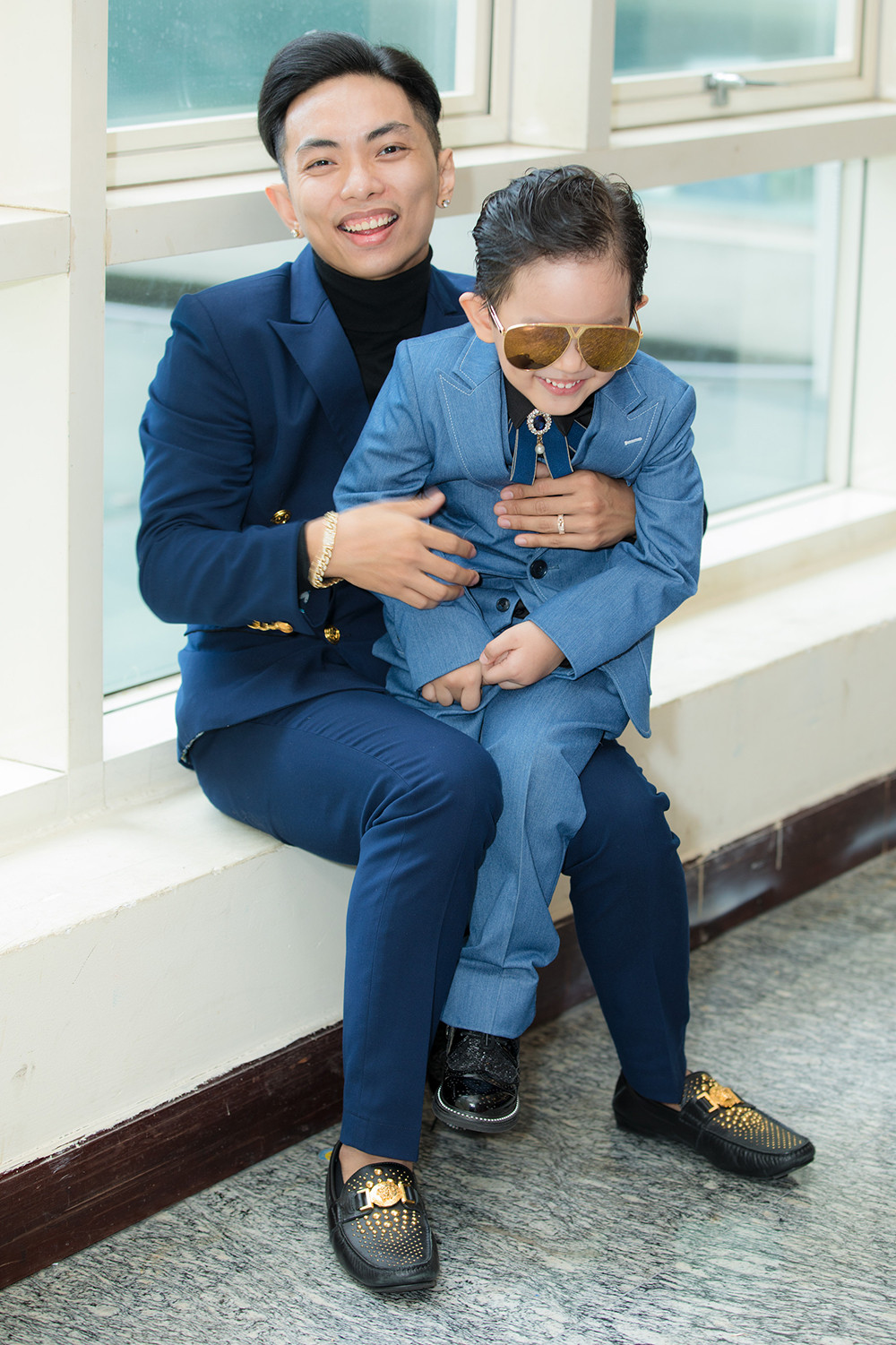 Phan Hiển luôn quấn quýt bên con trai để vợ có thể thoải mái tạo dáng chụp ảnh hay lên sân khấu biểu diễn.