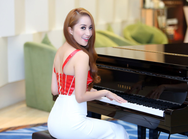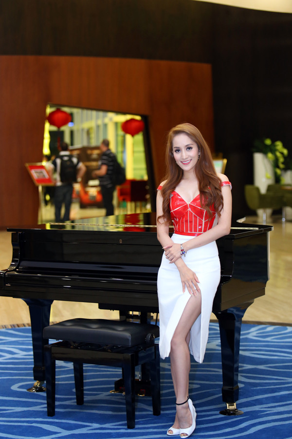 TPO - Nữ giám khảo xinh đẹp của Bước Nhảy Hoàn Vũ mặc váy trắng xẻ đùi gợi cảm, kết hợp cùng áo cúp ngực màu đỏ khoe vòng một quyến rũ khi tham dự một event được tổ chức tại Đà Nẵng.
