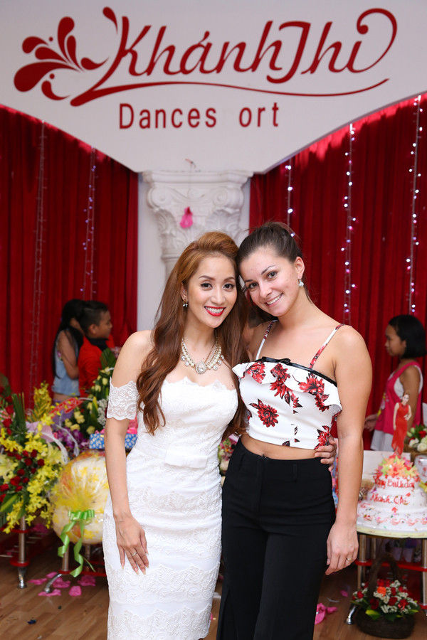 Các vũ công nước ngoài của cuộc thi năm nay cũng tới chúc mừng Khánh Thi trước khi về nước.