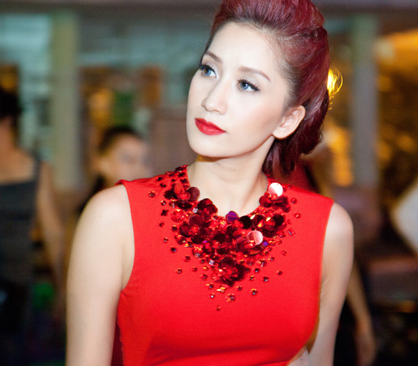Buổi tối cùng ngày, Khánh Thi xuất hiện trong hậu trường với thần thái rạng rỡ với bộ đầm đỏ rực gợi cảm.