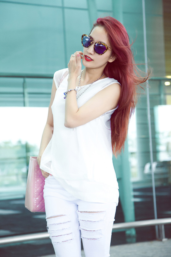 Mặc dù bận rộn chạy show nhưng Khánh Thi vẫn giữ được vẻ năng động, tươi trẻ.
