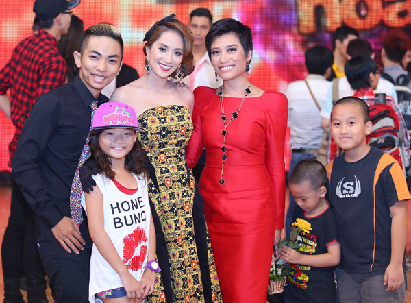 Khánh Thi bên học trò cưng và hai con trai của giám khảo Trần Ly Ly.