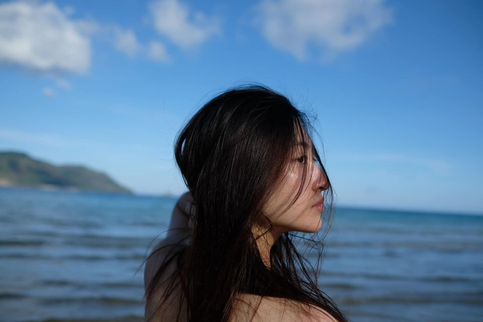 Hoa hậu Lương Thuỳ Linh khoe mặt mộc xinh đẹp trước biển.