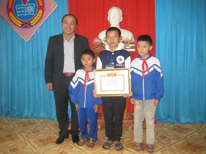 Thay mặt lãnh đạo ngành, ông Trần Trung Dũng, Giám đốc Sở GD-ĐT Hà Tĩnh đã trao giấy khen, phần thưởng và biểu dương, ghi nhận hành động dũng cảm của Nguyễn Đức Quyền.