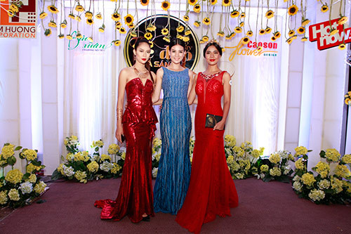 Trương Thị May - Á hậu cuộc thi Hoa hậu các dân tộc Việt Nam chọn chiếc đầm kiểu cúp ngực sang trọng bên cạnh chị Phạm Thu Phương – Giám đốc nhãn hàng Bảo Xuân