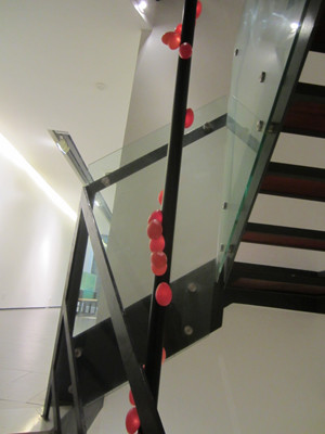 Thái Nhật Minh bày đặt tác phẩm theo tuyến dọc của không gian, bắt đầu từ trần đến tường và kết thúc ở sàn. Cột thép cao 12m của Trần Trọng Tri dường như cũng chỉ phô bày trọn vẹn ý đồ nghệ thuật khi được lắp đặt trong không gian cầu thang của ngôi nhà.