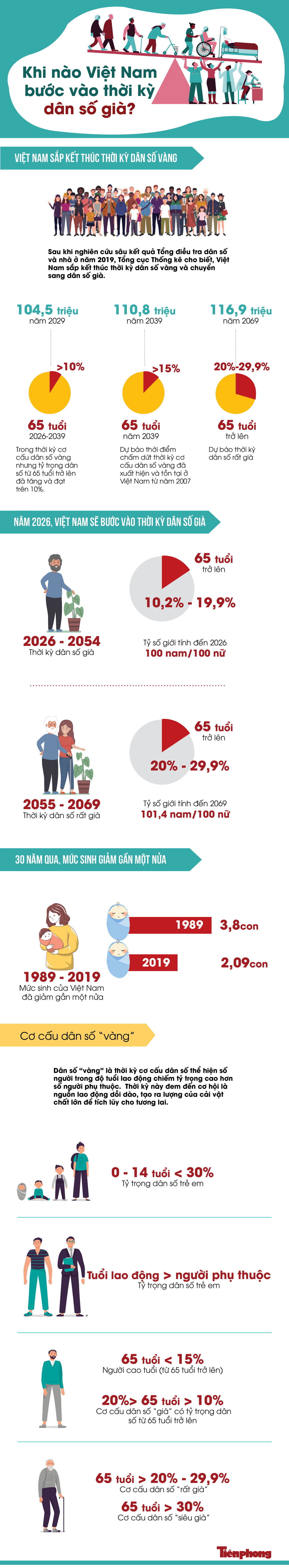 TPO - Sau khi nghiên cứu sâu kết quả Tổng điều tra dân số và nhà ở năm 2019, Tổng cục Thống kê cho biết, Việt Nam sắp kết thúc thời kỳ dân số vàng và chuyển sang dân số già.