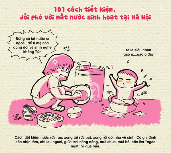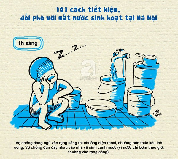 Tại một số khu chung cư mới, nước được cấp theo giờ. Oái oăm là thường rơi vào lúc giữa đêm và rạng sáng. Thế là nhà nhà thay nhau vào nhà tắm, bày xô chậu ra để hứng nước.