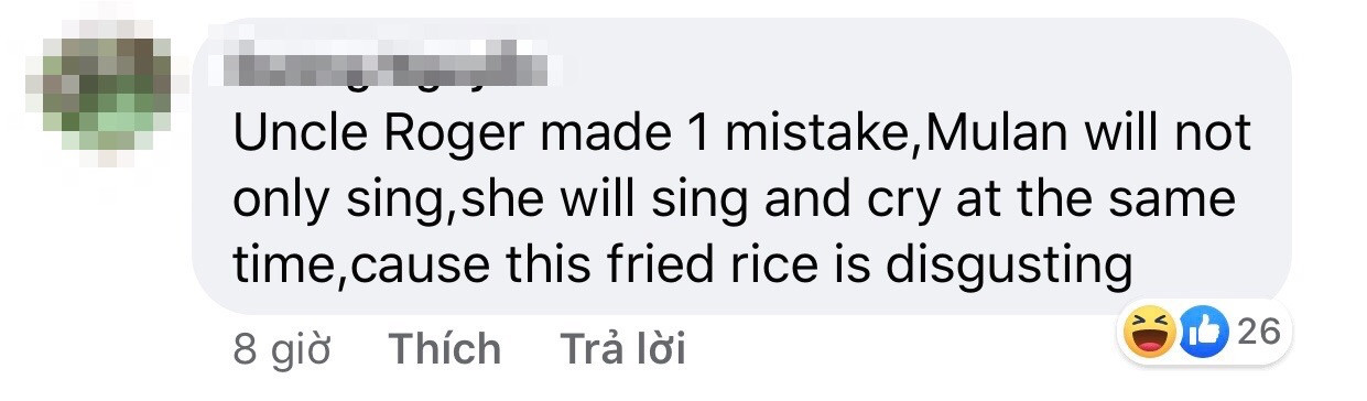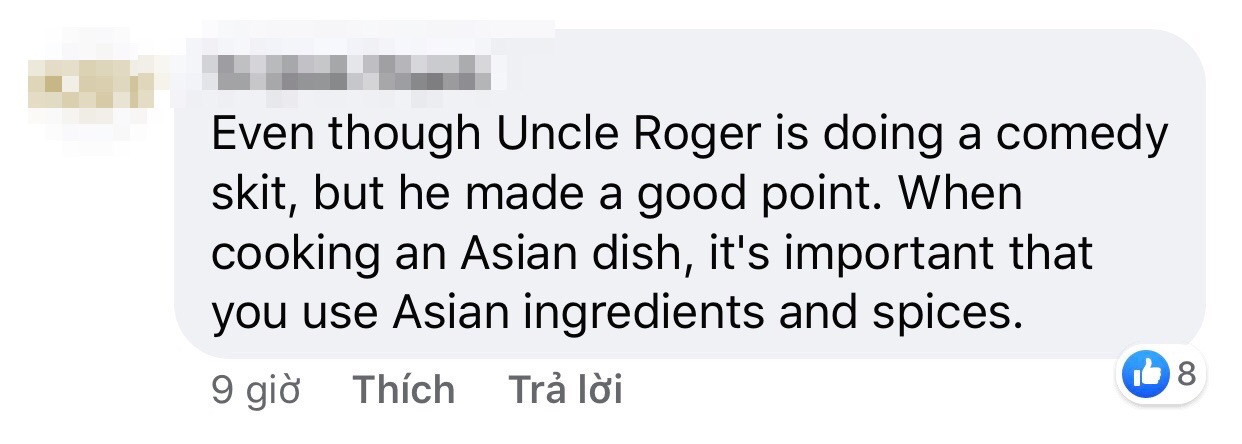 "Tuy chưa thấy được sự hoàn hảo của món ăn sau khi được bỏ thêm mứt ớt, nhưng chú là chú thấy nó bóng như gương rồi, soi được cả mặt đây này!" - Ảnh chụp màn hình Ngay khi video được Nigel đăng tải, loạt bình luận hài hước - a,k.a là những đoạn trích dẫn "huyền thoại" những bình luận của Roger đã được đưa ra: