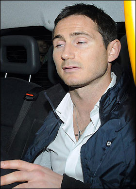 Frank Lampard ra về với đôi mắt đỏ, díp hết vào nhau. Anh phải vịn vào cô bạn gái Breakley mới có thể đi ra xe