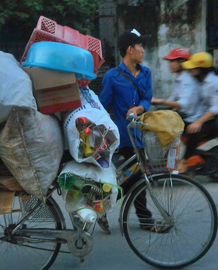 Bây giờ, đi ngoài đường thấy chai nhựa là sẵn sàng cúi xuống nhặt mang về. Đi xem đá bóng cũng chăm chăm nhặt chai lọ người ra vứt trên sân. Giờ thì ai cũng thành “đồng nát” thứ thiệt rồi”, Lê Thị Thủy tâm sự.
