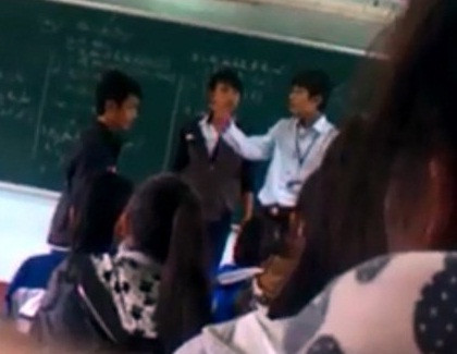 Một nam học sinh khác phản ứng việc bạn bị đánh, bị thầy gọi lên và tát tai (Cắt từ clip)