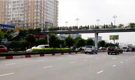 Trên cầu bộ hành cũng rất nhiều người dân đứng xem.