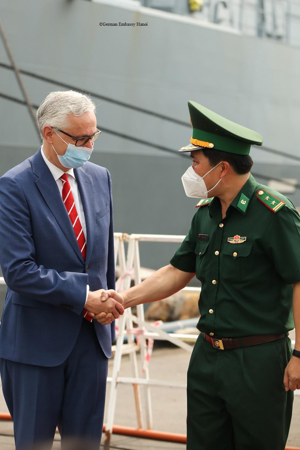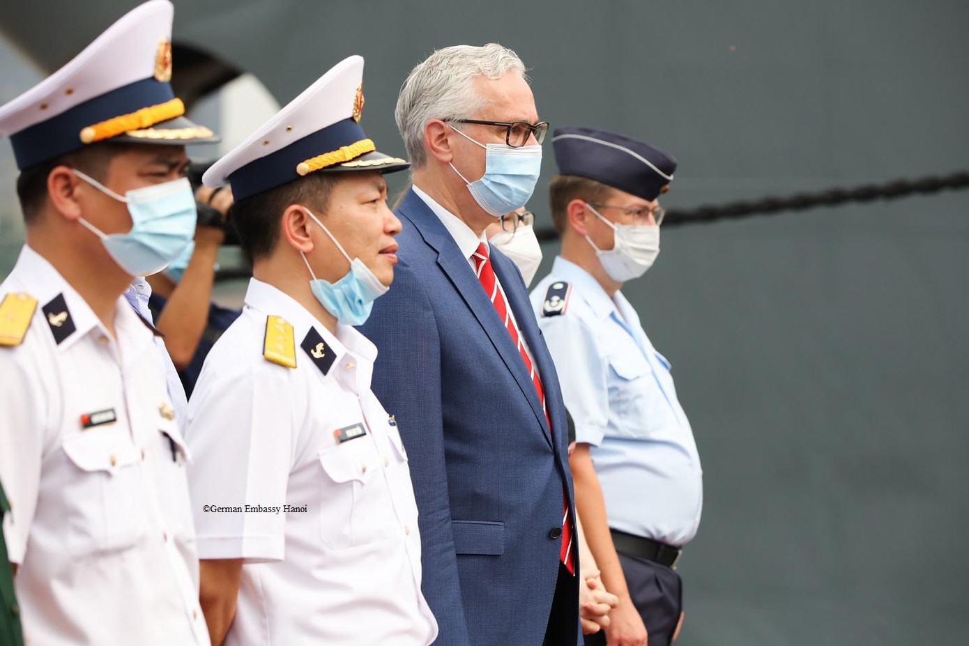 "Chúng tôi vui mừng chào đón chuyến thăm đầu tiên của một tàu hải quân Đức tại Việt Nam. Chuyến thăm thể hiện sự coi trọng của Đức đối với mối quan hệ đối tác Đức – Việt và giúp tăng cường mối quan hệ này. Chúng tôi hợp tác với Việt Nam trên nhiều lĩnh vực và chính sách an ninh là một trong số đó", Đại sứ Hildner phát biểu tại lễ đón.