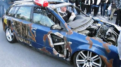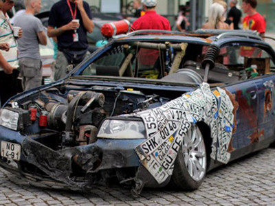 Nhìn chiếc xe, chắc chắn ai cũng lấy làm lạ là vì sao nó vẫn có thể vận hành được sau khi bị phá hoại tới mức đó. Nhà sản xuất xe sang Audi chắc cũng không thể nhận ra chiếc A4 wagon đời 2004 do mình sản xuất.