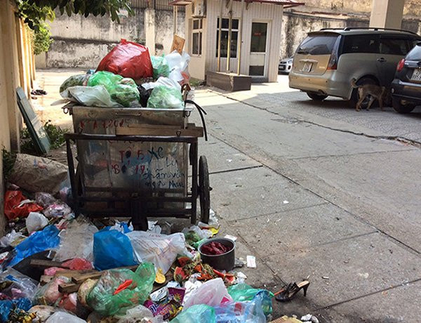 Còn phía trước là nơi tập kết rác. Một người dân ở gần trụ sở cũ VFF cho biết, dù đã có biển cấm đổ rác như do không có ai quản lý, rác vẫn bừa bãi, rất mất vệ sinh.