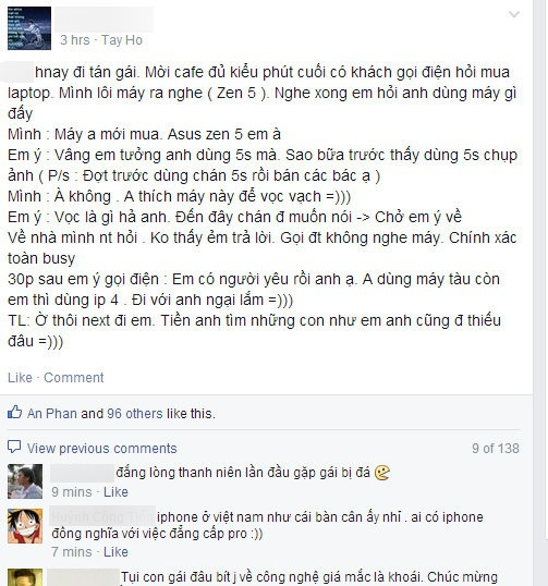 Bài viết của H.T trên một group chơi Zenfone 5 tuy mới đăng nhưng đã nhận được cả trăm bình luận. Nhiều người nửa tin, nửa ngờ câu chuyện này, trong đó phần lớn comment chỉ trích cô gái vì sính vẻ bề ngoài.