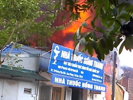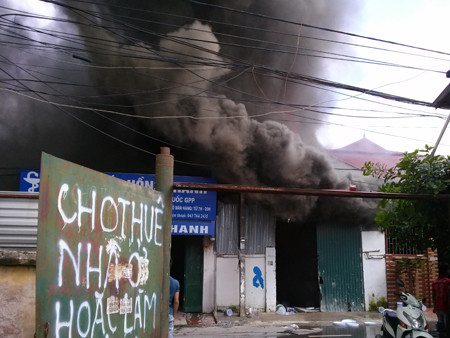 Ngọn lửa nhanh chóng bao trùm toàn bộ kho sơn rộng khoảng 300m2. Từ xa có thể nhìn thấy cột khói đen bốc lên nghi ngút. Vụ việc khiến toàn bộ công nhân đang làm việc trong kho sơn này hốt hoảng tháo chạy ra ngoài, đồng thời dùng xô chậu múc nước hất vào dập lửa nhưng không xuể.