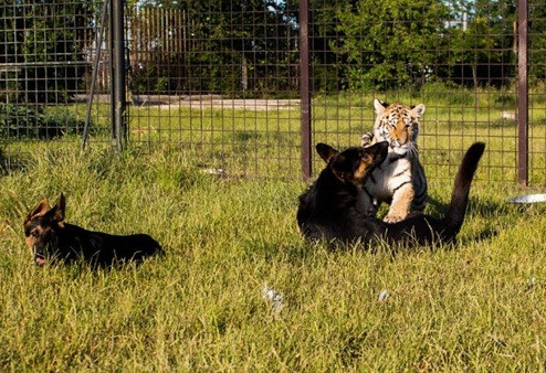Tại đây, những con hổ chung sống hoà bình cùng loài chó chăn cừu.