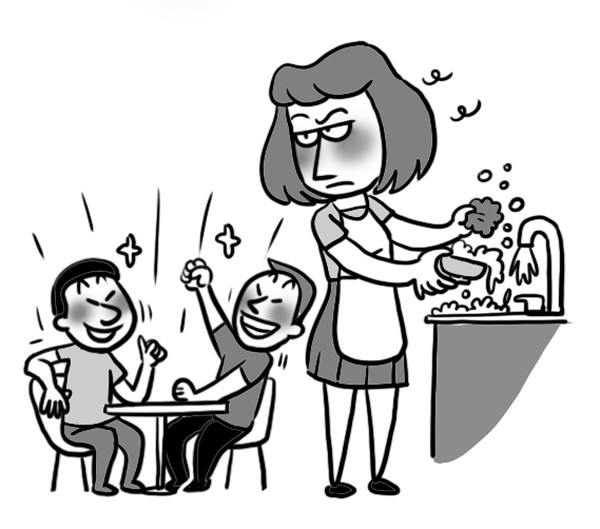Ơ, sao lại có kiểu "nô tỳ In - so - ra" thế cơ chứ?! Hỏi thêm tý: anh ấy và bạn bè bắt em làm ư? Hay em thích trổ tài nữ công gia chánh? MR. BB thấy thế này: Thấy bất bình giữa đàng không làm ngơ là tốt, thấy bừa bộn bèn ra tay dọn dẹp còn tốt hơn; nhưng có lẽ nên điều chỉnh, với một số trường hợp nên... kệ, vì dọn dẹp xong vẫn vậy í mà. Hazzzz…