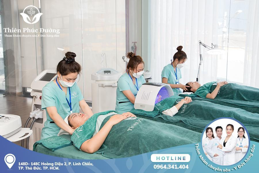Đặc biệt, trang thiết bị hiện đại được Thiên Phúc Đường sử dụng cho khoa Da liễu đều được nghiên cứu và đặt làm riêng theo đặc trưng sắc tố làn da của phụ nữ Việt nói riêng và người Á Đông nói chung. Đó là nguyên nhân Thiên Phúc Đường đảm bảo được chất lượng và hiệu quả trong việc nuôi dưỡng, chăm sóc làn da Châu Á.