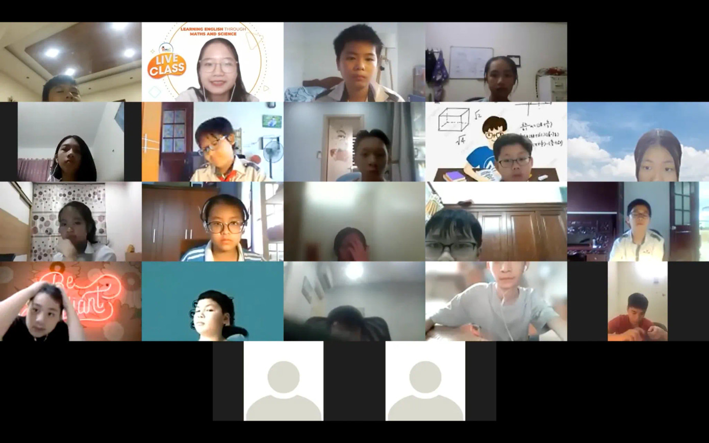 Toàn bộ khung chương trình học và bài tập thực hành được tích hợp liên môn gồm 15 chuyên đề/chủ điểm (tiếng Anh, Toán, Khoa học) được thiết kế để tối ưu môi trường học tập trực tuyến. Mỗi tiết học có thời lượng 45 phút, các em sẽ học với giáo viên nước ngoài trong 15 phút đầu tiên và 30 phút tiếp theo sẽ học với giáo viên Việt Nam. Học phí 1.200.000VND/học sinh/khóa.