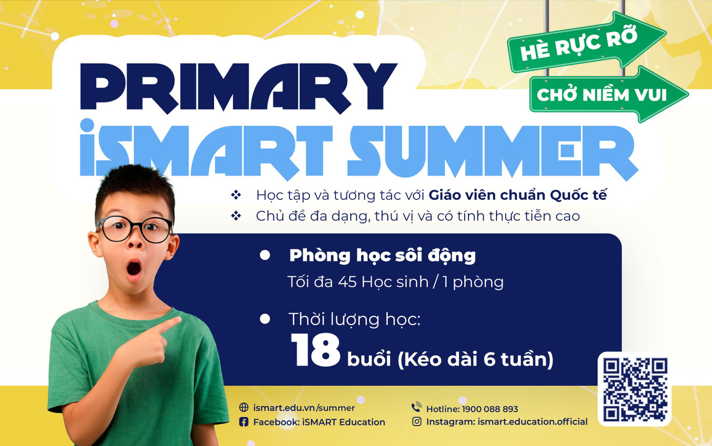 Theo đó, đối với học sinh tiểu học khối 2, 3, 4 (tính theo năm học 2022-2023), iSMART xây dựng khóa học hè Primary iSMART Summer với mong muốn giúp các em ôn tập, bổ trợ và củng cố kiến thức cũng như tạo sân chơi bổ ích cho các em trong dịp hè.