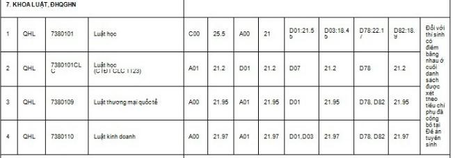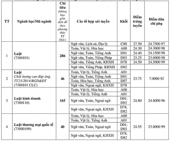 Mức điểm này là tổng điểm của tổ hợp đăng ký xét tuyển vào khoa Luật, đã bao gồm điểm ưu tiên đối tượng, ưu tiên khu vực và điểm ưu tiên xét tuyển.