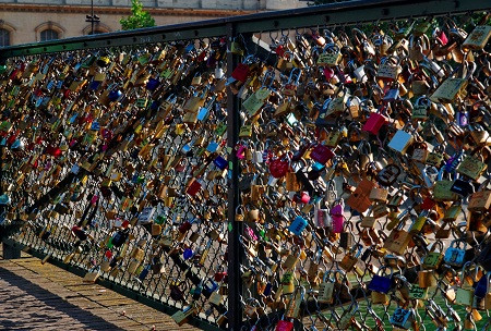 Những cây cầu trong thành phố Paris đã bị hư hại khá nhiều do hàng ngàn chiếc khóa được cài lên bởi các đôi tình nhân với hy vọng mối tình của họ sẽ bền lâu mãi mãi.