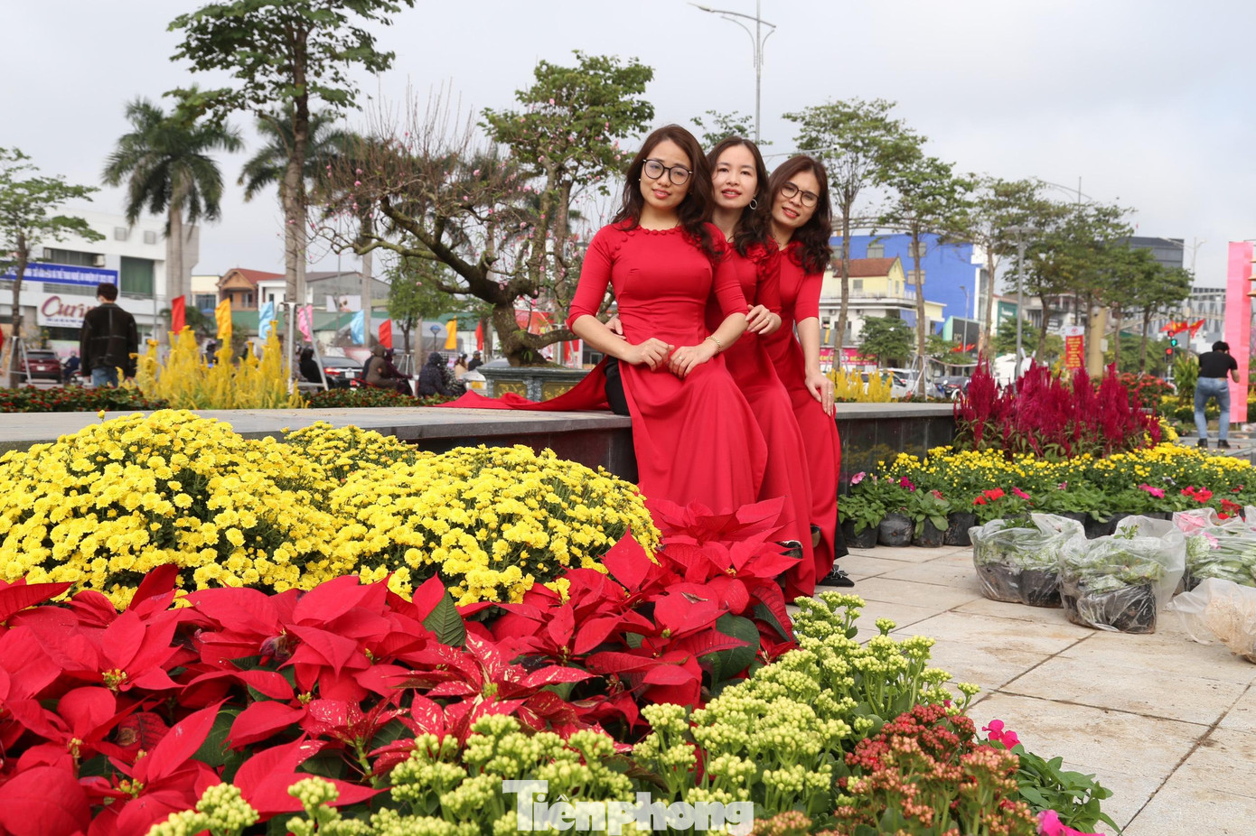 | Sắc hoa tràn ngập tuyến phố như khoác tấm áo mới trong ngày Tết. |