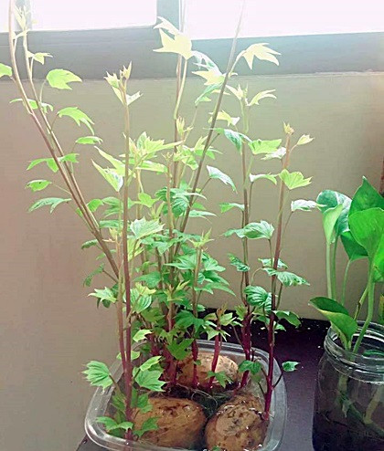 Anna Vũ, ở Hà Nội, cho biết cô mua khoai lang về ngâm nước, khoảng 4,5 ngày sau củ nảy mầm, sau đó phát triển thành ngọn, vươn lên rất nhanh. Trong vòng hai tuần cây đã có nhiều lá.