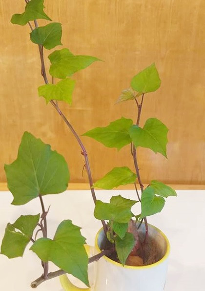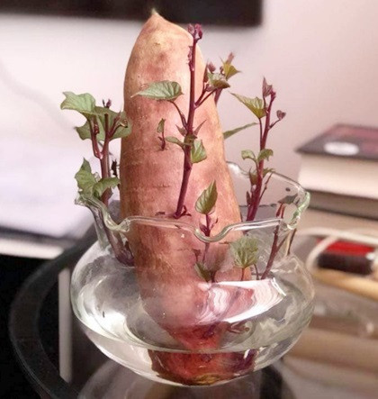 Trên mạng xã hội, mọi người thi nhau khoe thành quả trồng khoai trong bình nước hoặc chậu đất. Những chậu cây bé xinh được gọi với cái tên mỹ miều "khoai lang bon sai".