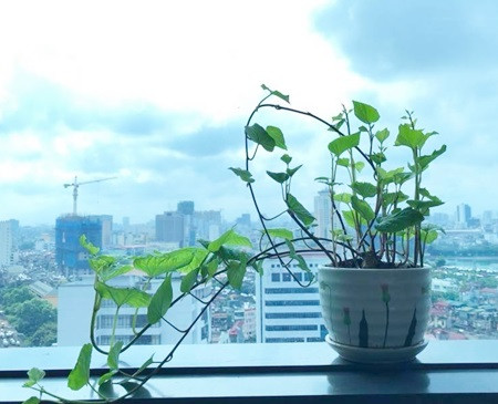 Củ khoai lang nhà chị Ngọc Dung (Hải Phòng) mọc dây leo khắp nhà. Chị sau đó đã phải cuộn lại các ngọn cho gọn gàng hơn.