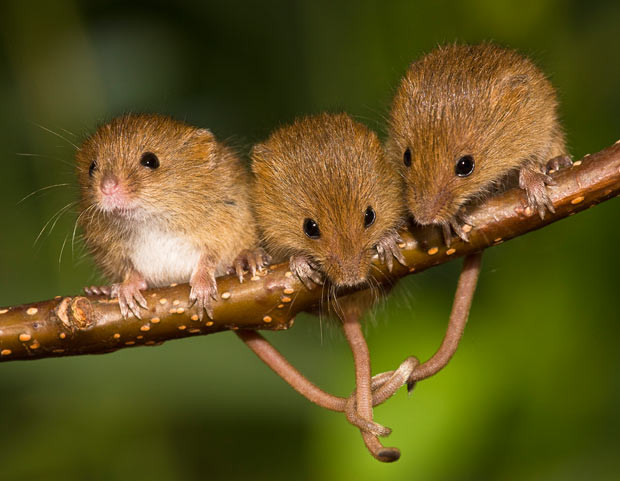 Những con chuột móc đuôi vào nhau chơi đùa trên cành cây trông thật ngộ nghĩnh