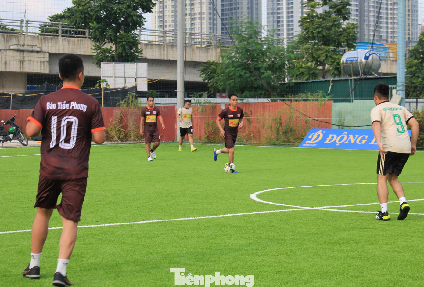 | Chiều 7/8, đội bóng Báo Tiền Phong và Báo Bảo vệ Pháp luật đọ sức tại giải bóng đá Cúp Trung Thành Food trên sân bóng FPT. |