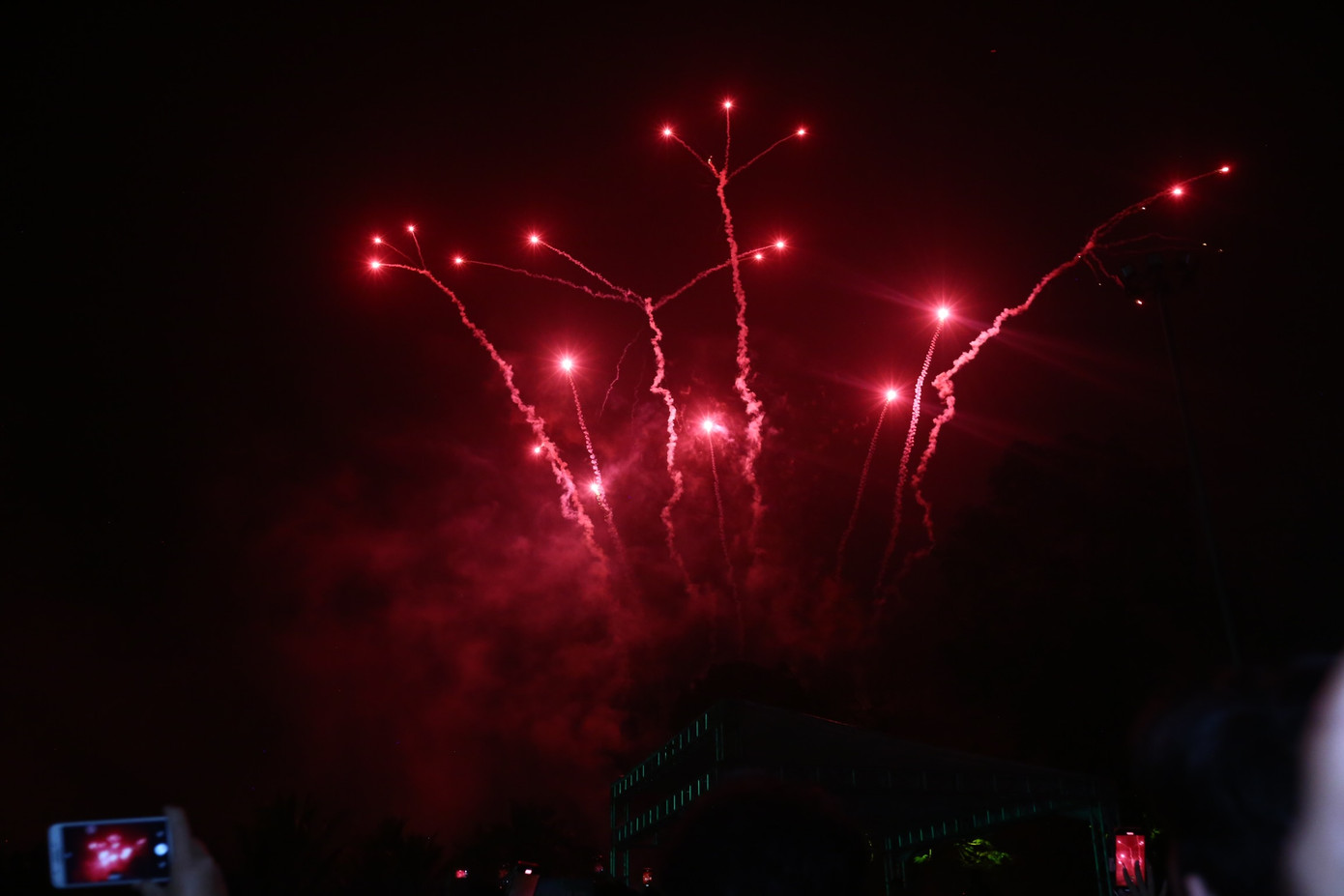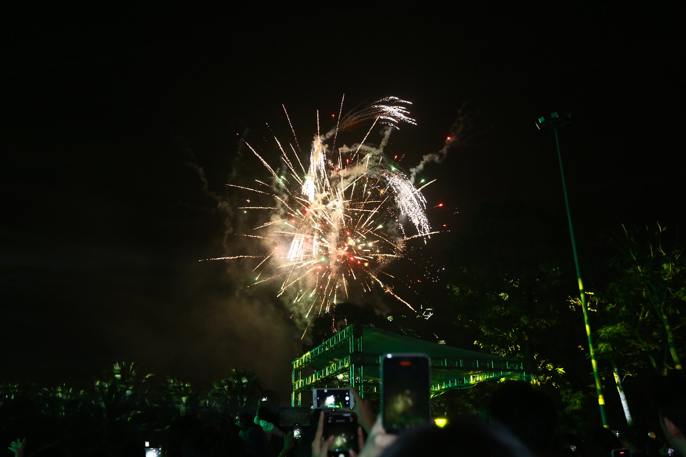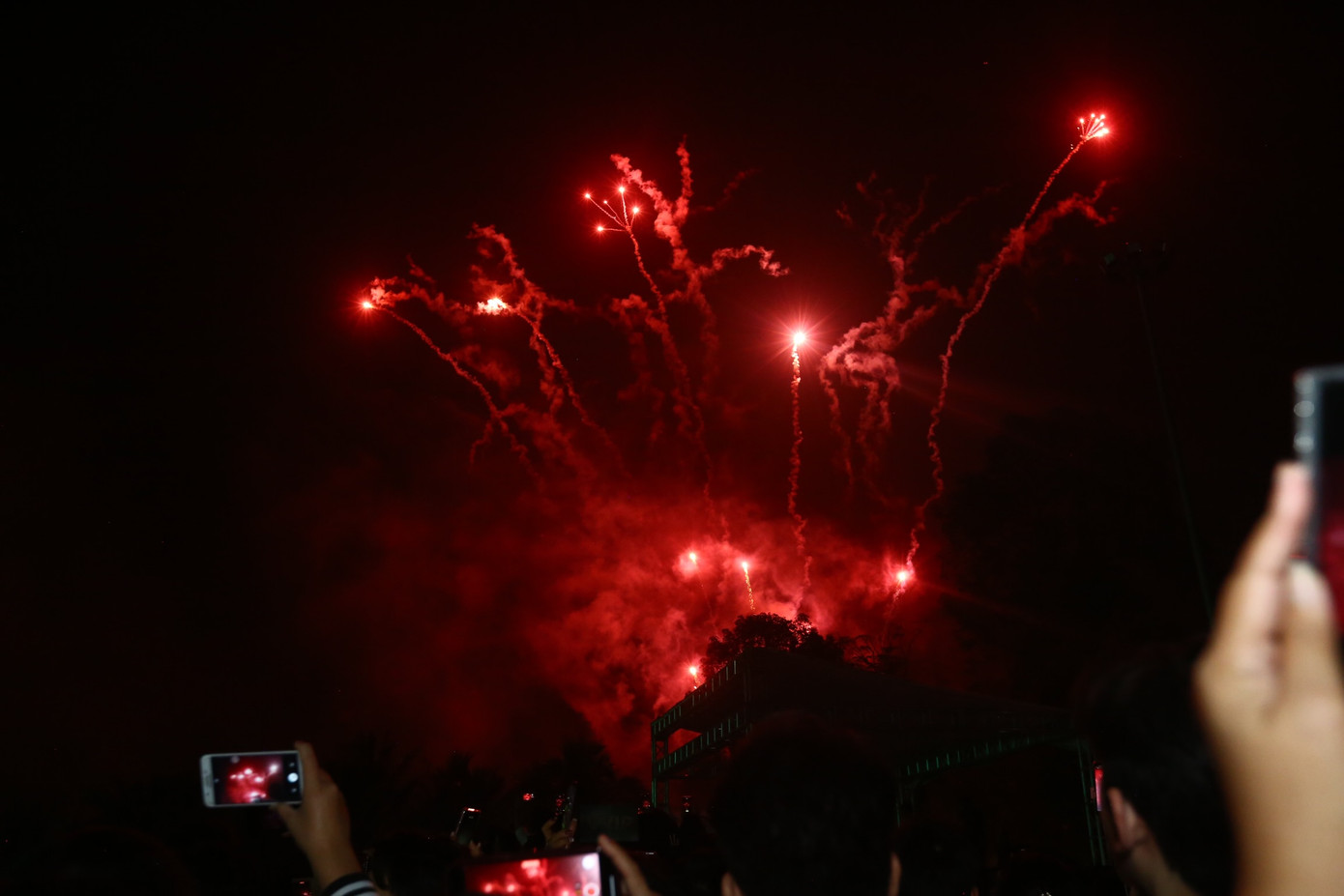 | Pháo hoa rực rỡ trên bầu trời dưới sự phấn khích của người dân và du khách. |