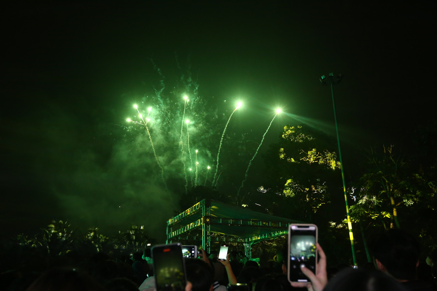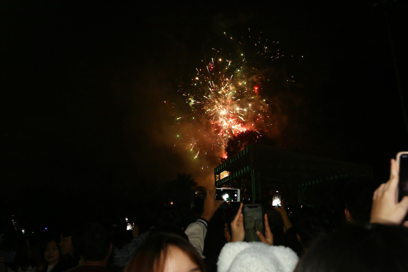 | Đúng khoảnh khắc bước sang năm mới 2024, pháo hoa được bắn tại khu vực countdown tại khu đô thị Ecopark. |